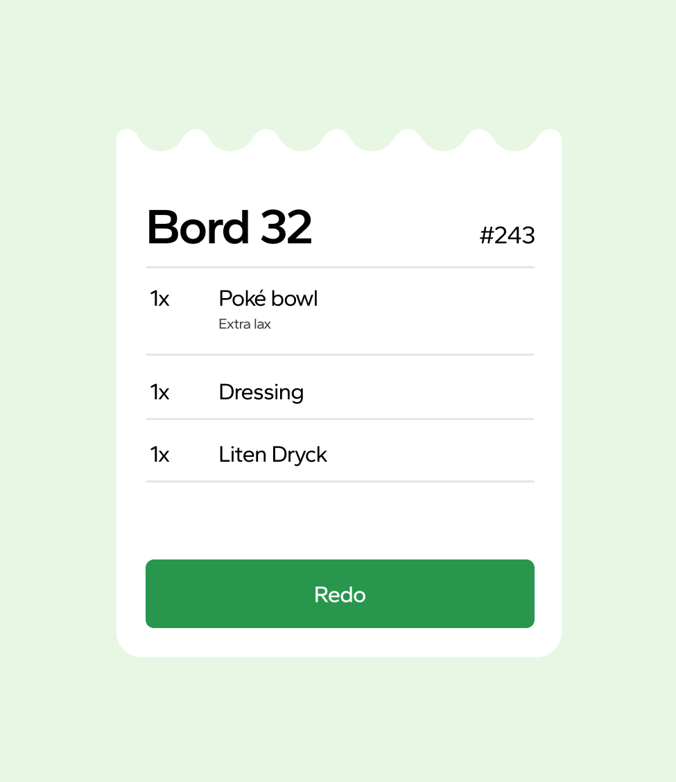 Systemet sorterar automatiskt beställningen till rätt station och ger köket full koll på vad som ska tillagas.
