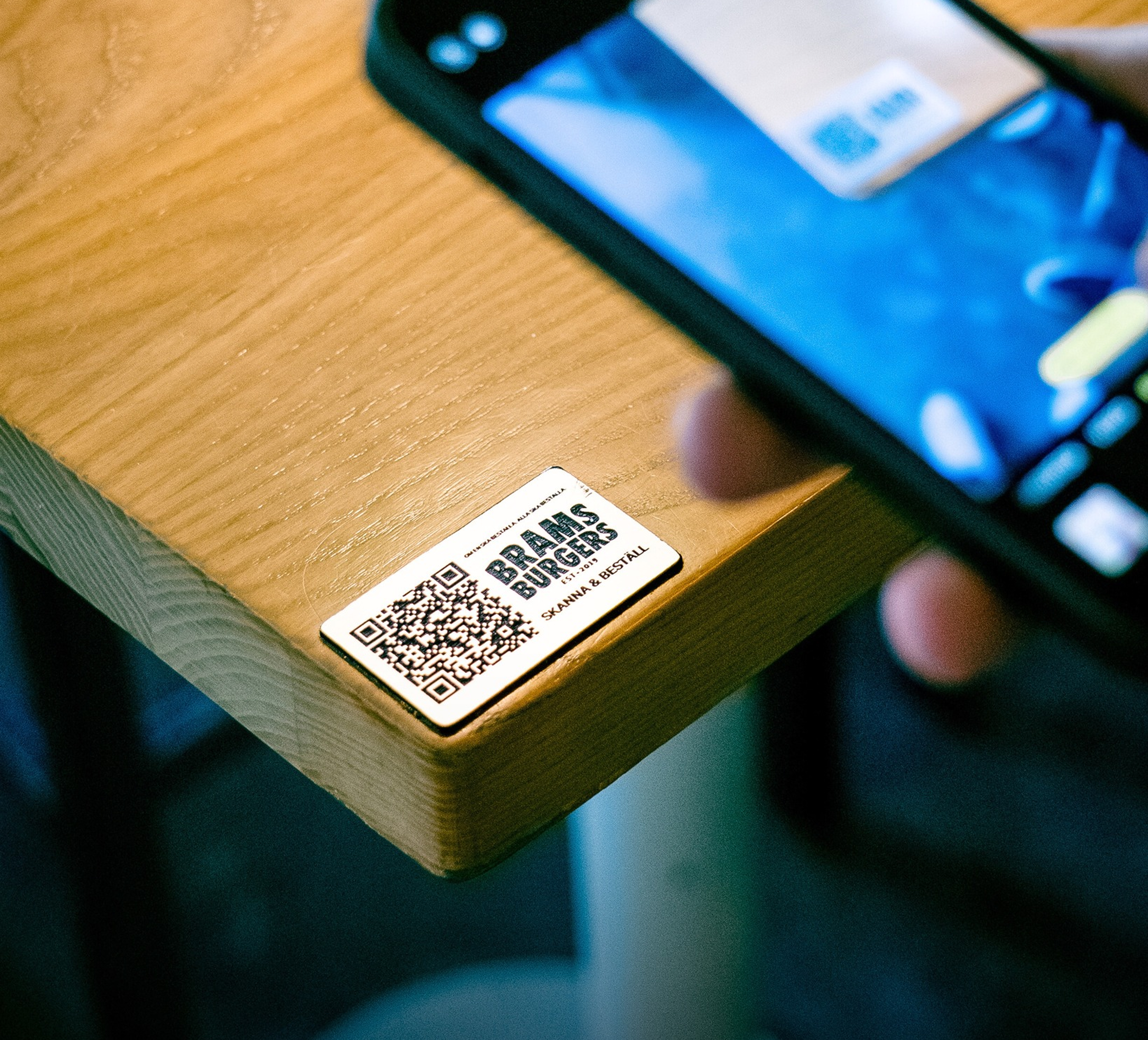 Gästen skannar en unik QR-kod med mobilen. När beställningen gjorts så skickas den direkt till köket för tillagning.