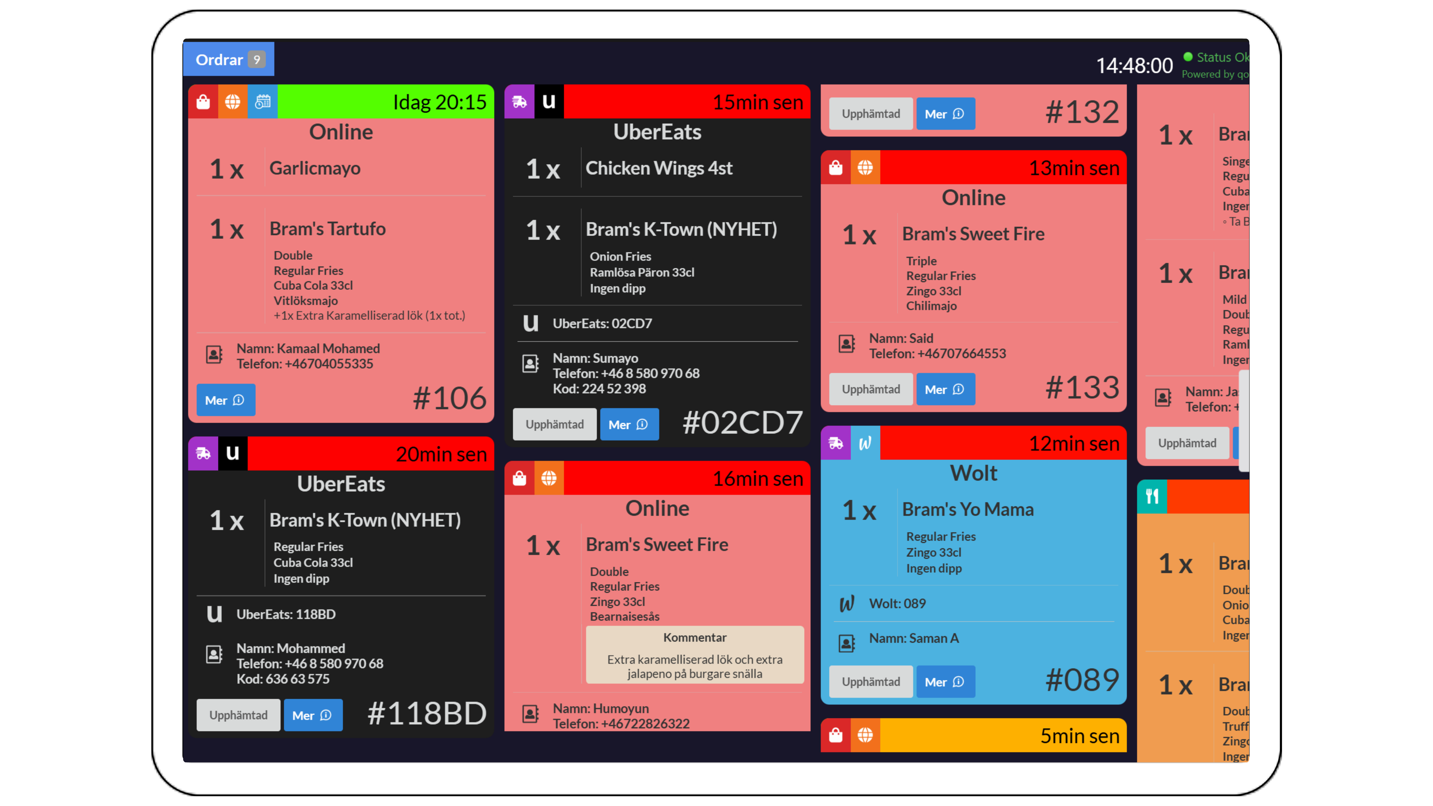 Systemet sorterar automatiskt beställningen till rätt station och ger köket full koll på vad som ska tillagas.