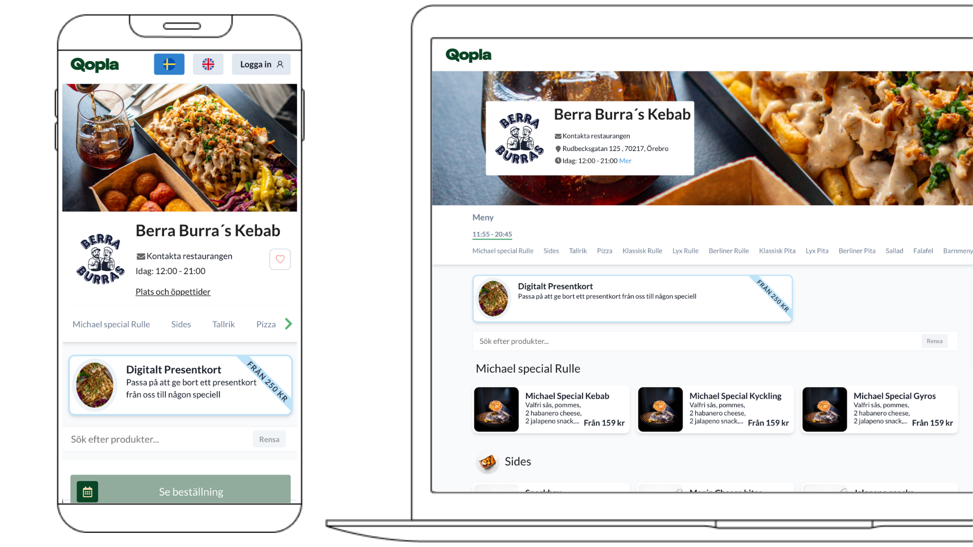 Du loggar in i Qoplas adminpanel, gör ändringen en gång och sparar. Menyn pushas direkt till webbshopen, expresskassor, QR-menyer och – om du använder Delivery Integration – även till Uber Eats, Wolt och Foodora. Ingen extra export eller manuell uppladdning behövs.