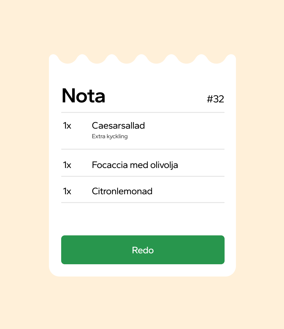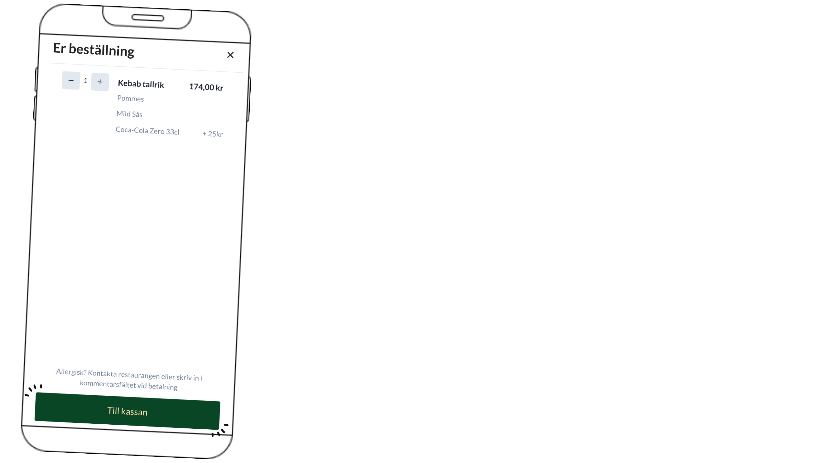 Vi integrerar eller tar fram en ny hemsida där dina gäster kan beställa från direkt. Du slipper höga avgifter från andra appar och behåller relationen med gästen. Beställningarna går direkt till kassan – precis som om gästen satt vid bordet.